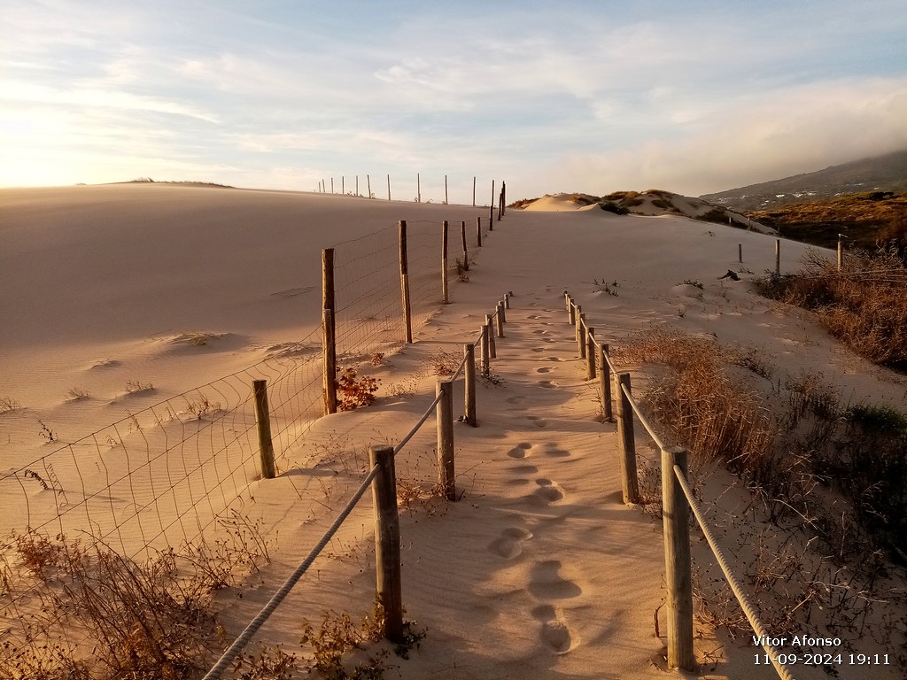 a areia a tapar totalmente o passadiço, que já tinha sido coberto e elevado,