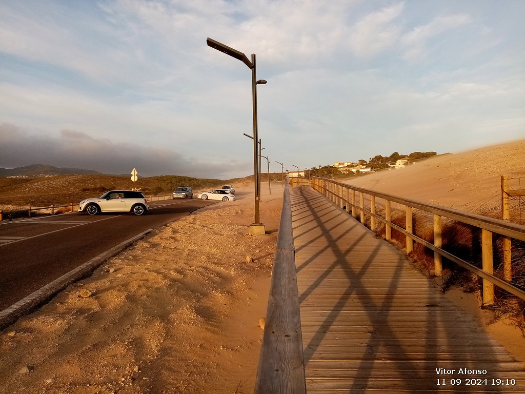 chegado ao carro, no centro de interpretação das dunas da Cresmina tinha isto na paragem do autocarro, onde aproveito o banco para tirar os "kilos" de areia nos pés,