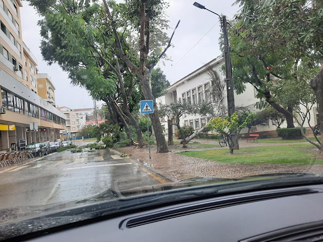 Por aqui, caiu uma árvore ao pé da escola, a uns 200 metros em linha recta de onde moro, ia levando as persianas, só tive tempo de fechar as persianas. Rendeu cerca de 12 mm em pouco mais de 10 minutos, mas caíram 10 mm em 5 minutos.